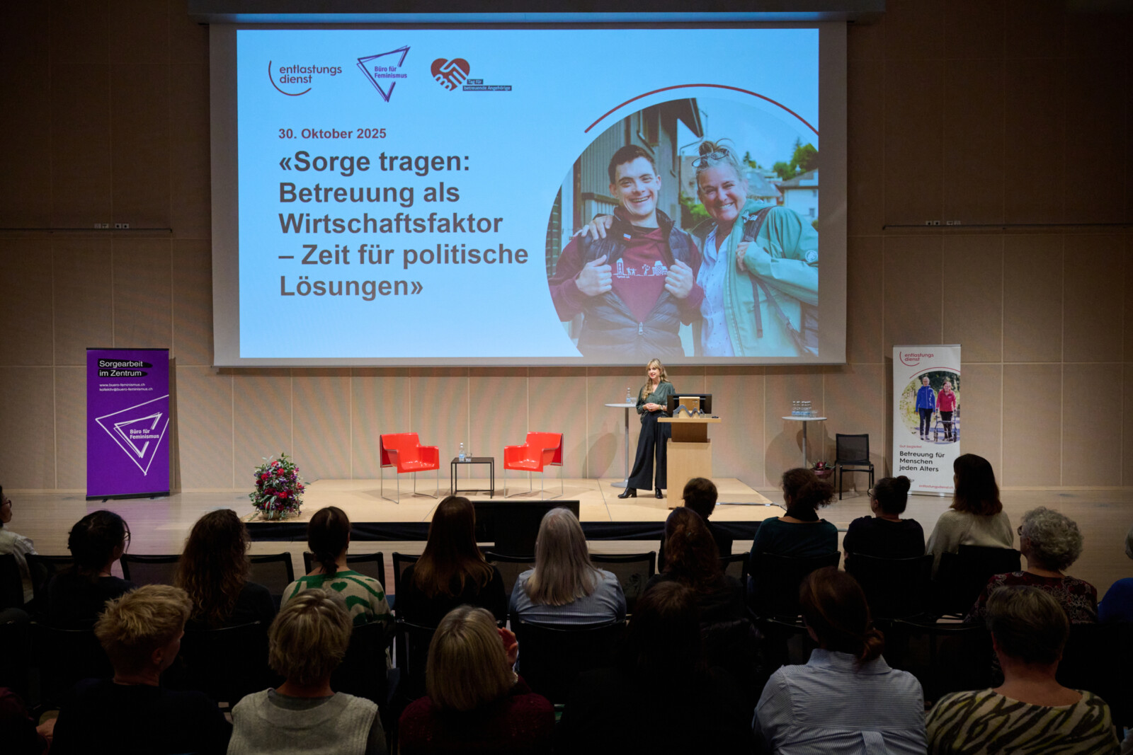 Noch immer wird ein Grossteil der Betreuungsarbeit privat, unbezahlt und oft unsichtbar von Angehörigen geleistet. Fachpersonen, Politiker:innen und betreuende Angehörige waren sich an der Tagung einig: Betreuung muss rechtlich, finanziell und institutionell denselben Stellenwert erhalten wie die Pflege.